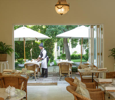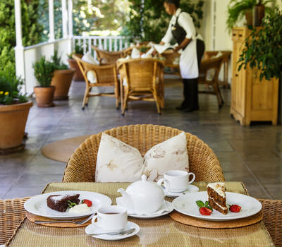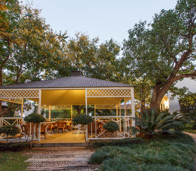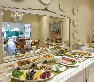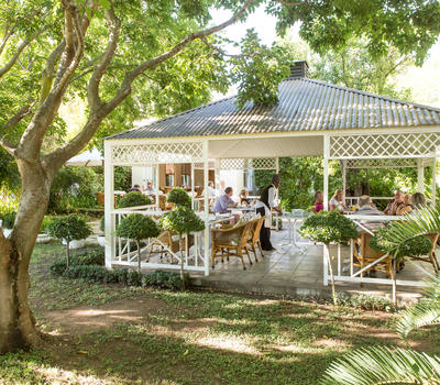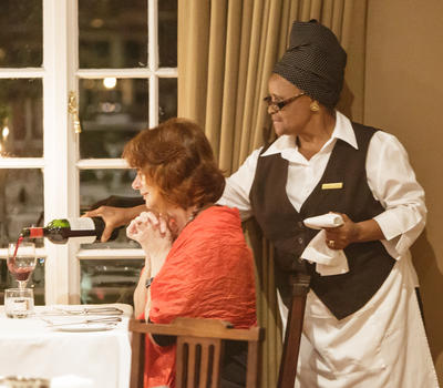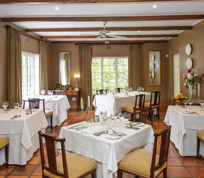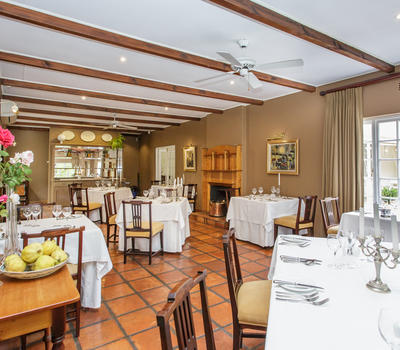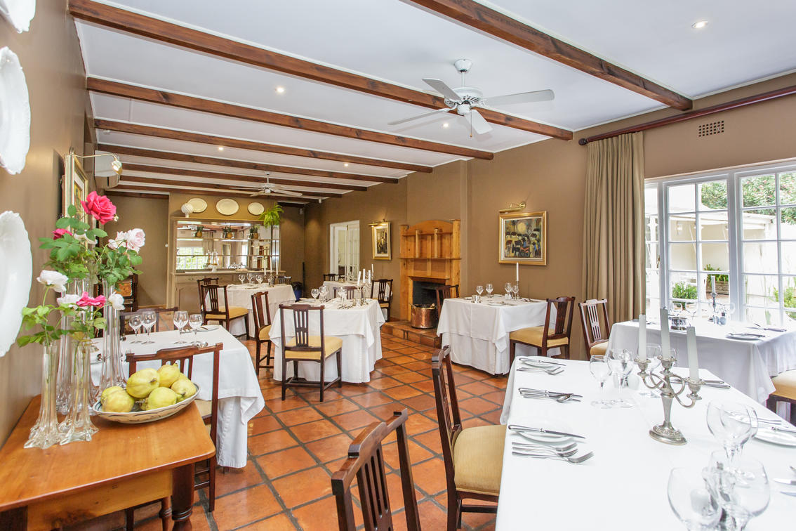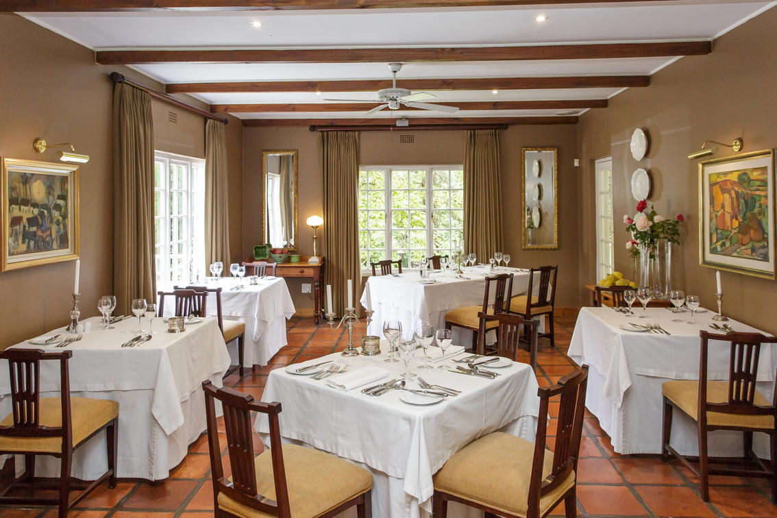 Un menú de cinc plats de taula d'hôte canvia cada dia amb els capricis de les estacions i els capricis del xef. La Cuina Tradicional Casolana Karoo t'espera per punxar totes les teves papil·les gustatives. Les cambreres coneixedores aportaran un toc de benvinguda a l'hospitalitat del país.