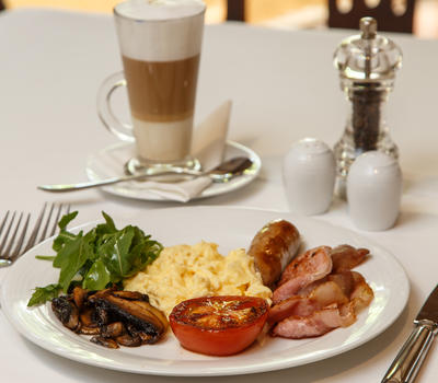 Gaudiu d'un esmorzar complet en anglès que se serveix al nostre cuidat jardí, sota la glorieta o dins de la sala d'esmorzars assolellada.