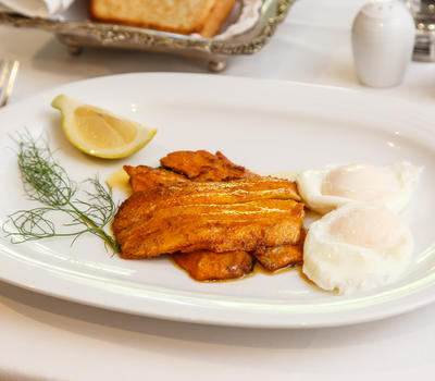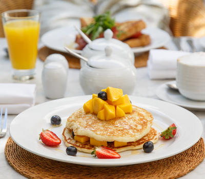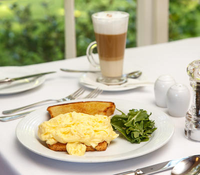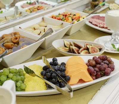 El bufet inclou pans casolans, fruita fresca, selecció de cereals, embotits, salmó i molt més. Els àpats càlids, demanats al Menú Esmorzar, són acabats de preparar.