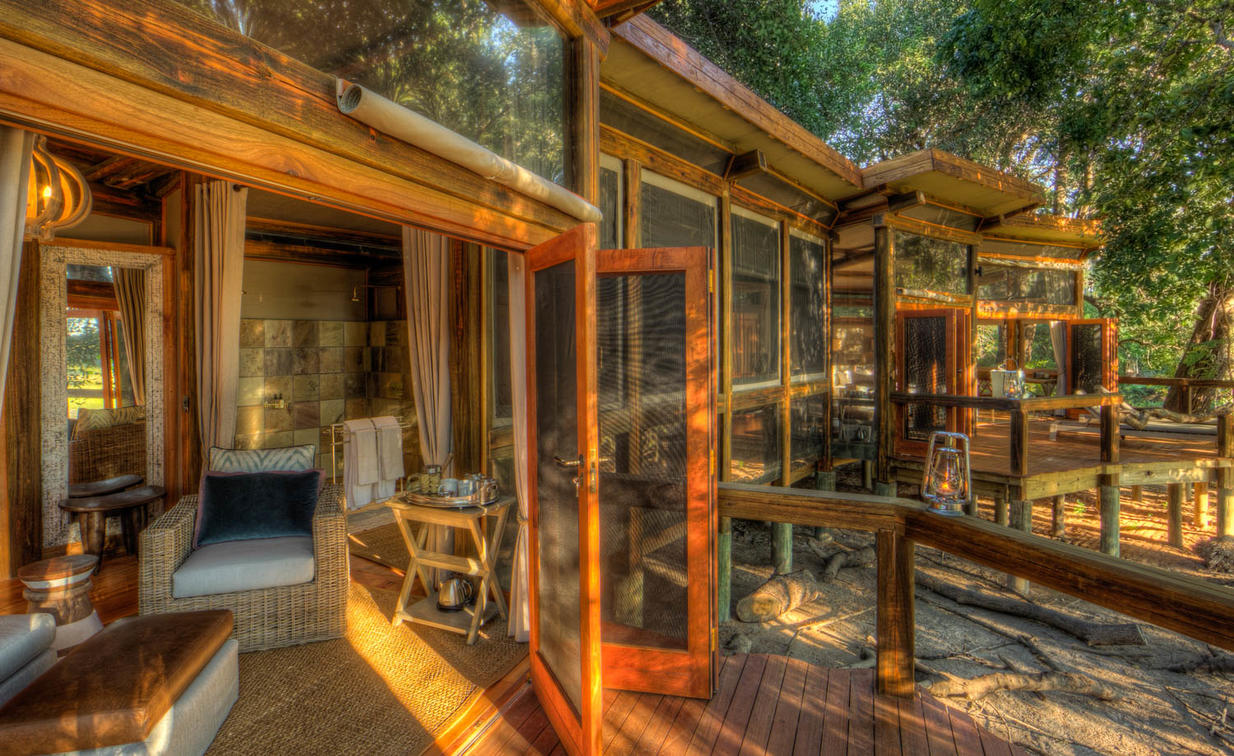 Luxurious elevated safari suites with stacking doors on expansive private decks and raised on Silligna platforms