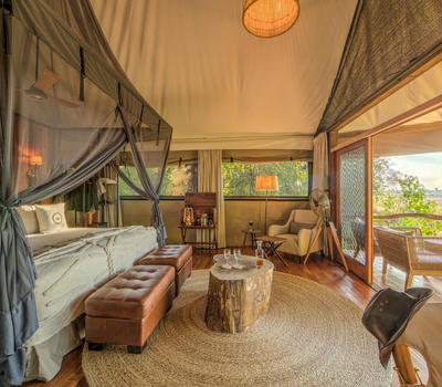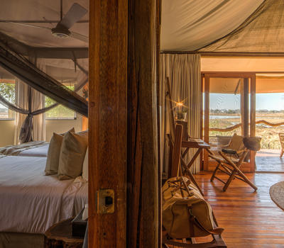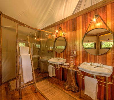 Guests are accommodated in spacious, twin-bedded safari tents, each with en-suite bathrooms with shower, hot and cold running water and flush toilet. The tents are well spaced, affording privacy whilst remaining within comfortable distance from the main camp area. Double on request.