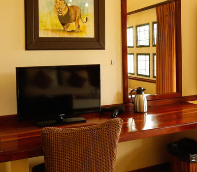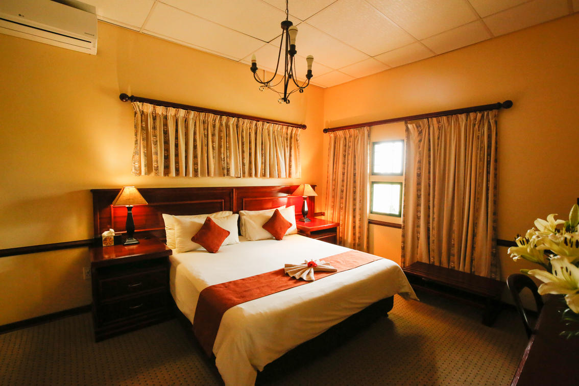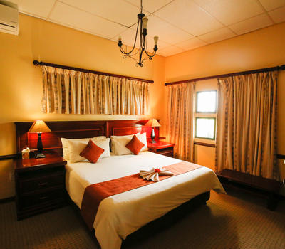 2 Presidential Rooms with King size extra length bed with private balconies with views of the Thamalakane River private lounges/Bar and mini bars. All rooms have air conditioning, safes, two HD TV'S with unlimited bouquet of channels and Jacuzzi Baths and a shower.