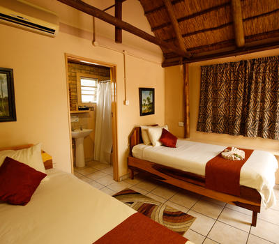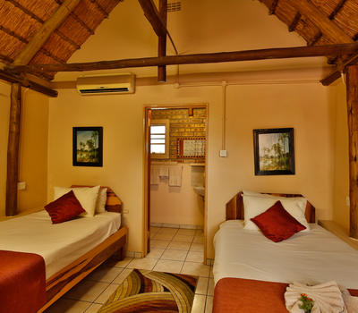 12 x Budgeted Chalets with twin 3/4 beds and Private Parking, great for self drives and tour groups.All Chalets have Airconditioning, WIFI, Tea and Coffee facilities, room safes and fridges