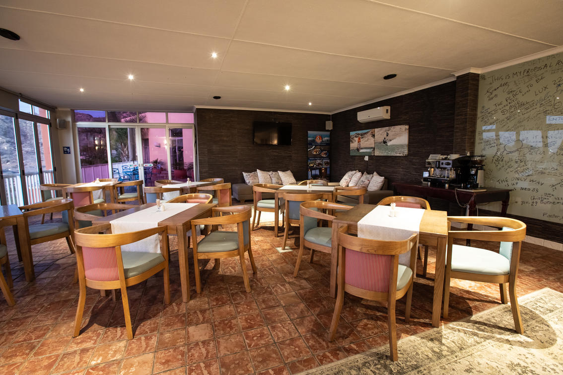 The Crayfish Bar & Lounge offers a large screen HD TV, mix of contemporary sofas, tables and chairs. The lounge with its adjacent fully stocked bar enjoys superb views over the sea, peninsula and Namib Desert beyond. A delicious light menu as well as the famous and delicious local oyster, reputed to be #1 in the world for quality, can be ordered and enjoyed here.
