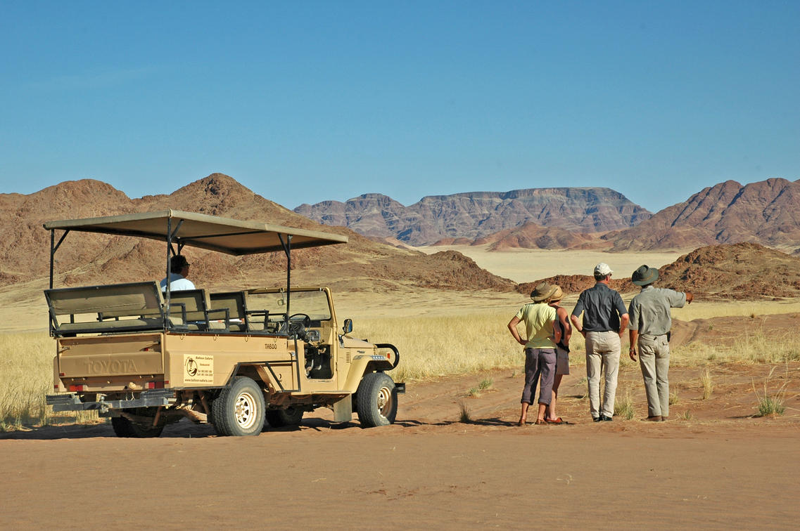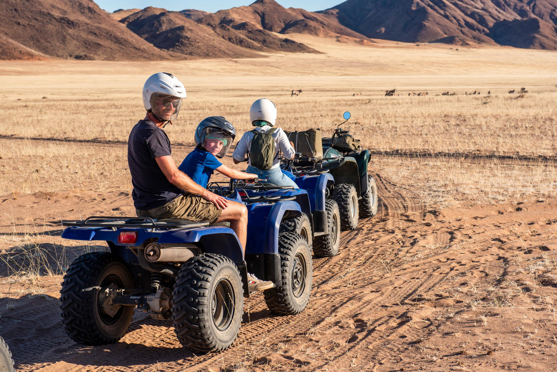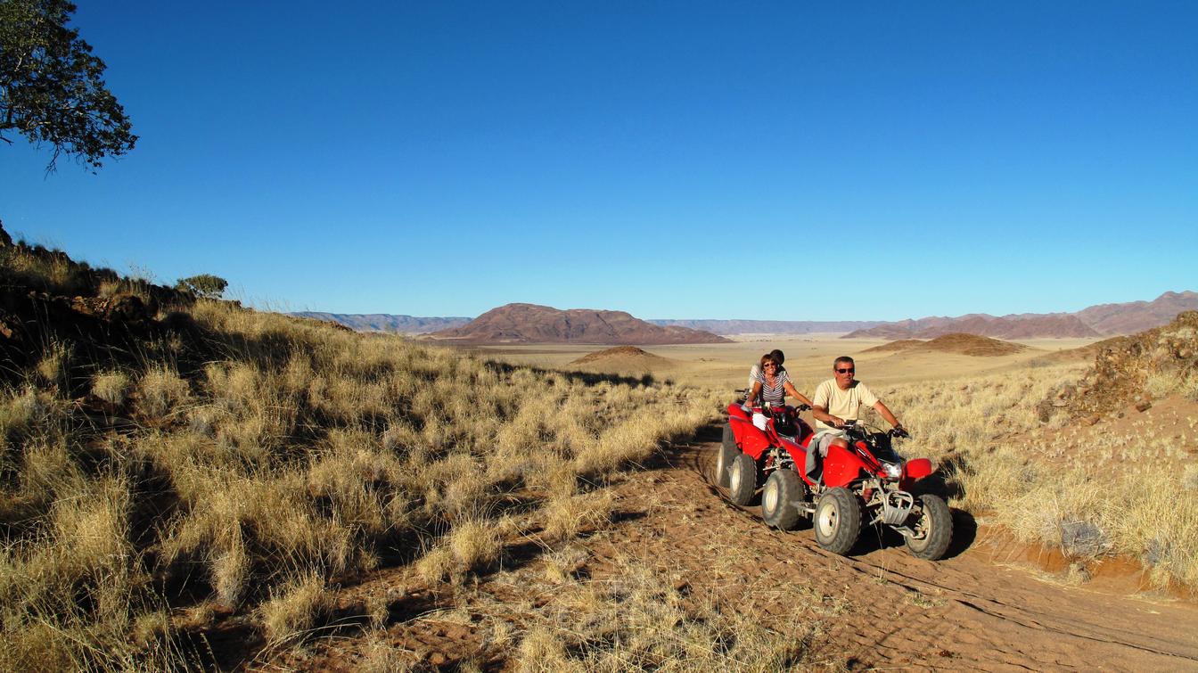 Sunrise and sundowner guided quad-bike excursion; (we regret that children younger than 12 cannot participate). View a magnificent sunrise or sunset over the Tsaris Mountains surrounded by the majestic dunes.