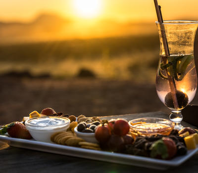 Walk up to the sundowner location and make yourself comfortable. Order your drink of choice, or choose from one of our famous cocktails or mocktails and delight in sumptuous snacks.