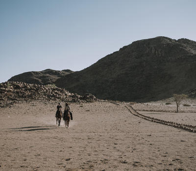 ‚Stars of the Namib‘ with five stages of riding and two overnight stays (Namib Outpost / tented camp) offers a very intense experience for horse lovers, coupled with the exploration of nature in the Namib Desert. Riding to the next destination is done during the cooler time of the day while enjoying some lunch and downtime during the heat of the day.