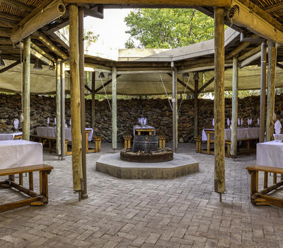 At a typical Namibian Rural Village families are divided into three areas when dining. Traditionally one area is dedicated to men, one to women and the other for the elderly and children. When Etosha Village was designed, we remained true to this tradition and created three different dining areas at our restaurant, but of course not split into gender groups.