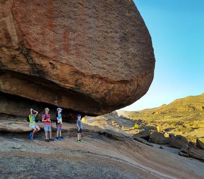 This activity starts from the lodge with a 10min drive to Moringa valley. From there guests hike to a number of different rock art sites, including some fantastic viewpoints along the way. Then another short drive (10-15min), followed by another hike through majestic landscape to view some more rock art sites and interesting rock formations. A short 20min drive will then take you back to the lodge. Total duration is approximately 3 hours.