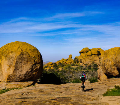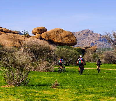 Our trails are suitable for riders of all abilities, but we focus on making them fun, free-flowing and beautiful. There are many trails to choose from, but we have marked three routes with different lengths and difficulties, using jeep tracks or specially made single track trails. If you want more challenge and adventure, you can try some of the extensions that go to the granite outcrops of the property.