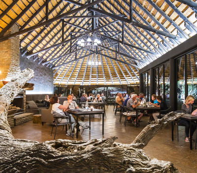 The Lodge consists of a main building with a thatched roof dome, which hosts the welcome area with reception, guest lounge, public bar and restaurant which can seat up to 50 guests - serving breakfast, lunch and dinner.