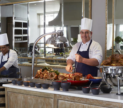 Be escorted by one of the Mount Nelson chefs to the heart of the hotel kitchen. Behind the hub of activity, an intimate dining space awaits. And so begins a wonderfully immersive experience, as chefs serve a succession of dishes from canapés and breads to mains and desserts.