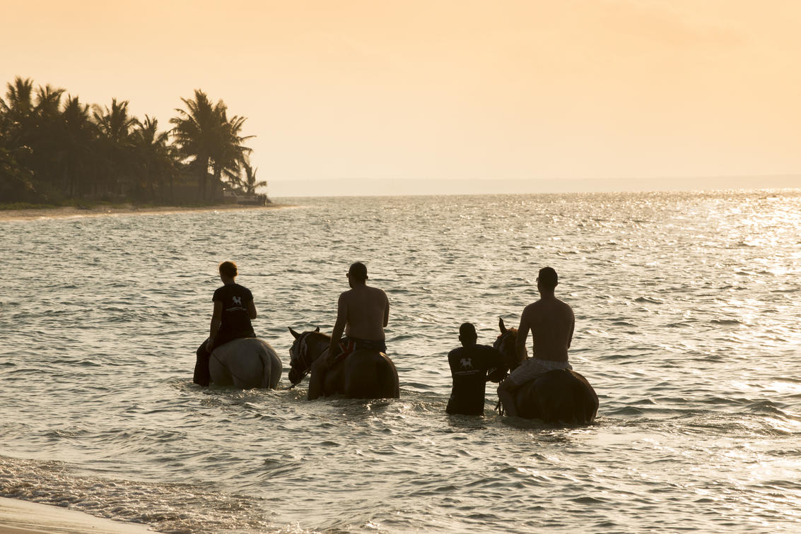 Equine enthusiasts of all ages, and riding levels, will have the memorable opportunity to enjoy a fun-filled Swimming with Horses adventure, on &Beyond Benguerra Island. Dress down for the occasion, in just your swimwear, and ride bareback into azure waters, floating amongst the waves on top of your mount. Expect plentiful splashing, and bouts of laughter, as the horses absolutely love to frolic in the ocean. Afterwards, hop off your steed and allow them to enjoy a well-deserved roll on the beach. This 30 to 45 minute adventure allows for a maximum of 4 guests per swim and is perfect as a standalone activity or can be added after a more extensive horseback exploration of the island. The Swimming with Horses activity is seasonal as well as weather and tide dependent.
