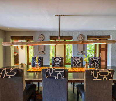 The choice of dining around the communal candle-lit main table, or to be seated separately, or even outside on a balmy African evening, is yours.