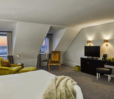 The Loft-Style Junior Sea-Facing Suites feature an open-plan, en-suite bedroom and lounge and offer a pleasant amount of space, ranging from 25 to 45 m². All of these suites present views of the Atlantic Ocean.