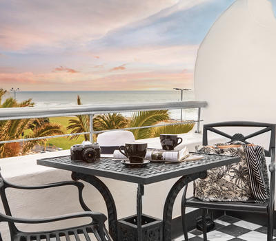 The Luxury Balcony Suites feature impressive views of the Atlantic Ocean and the adjacent Sea Point Promenade. It is incredibly spacious, measuring 59 m², and includes amenities that give it a presidential-suite feel