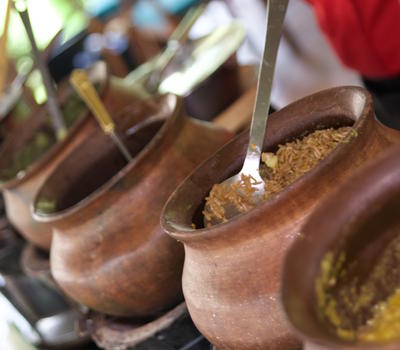 An open-to-air restaurant with traditional Swahili food on offer.