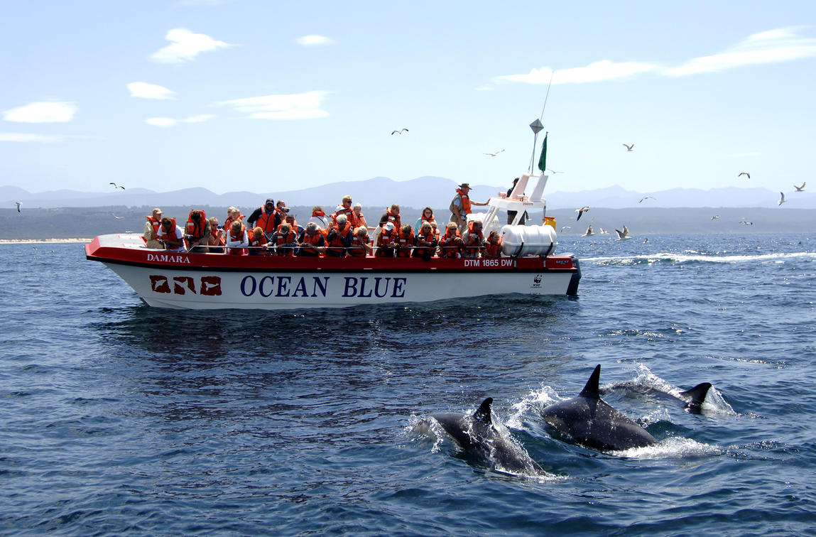 Situated in the coastal town of Plettenberg Bay (20 minutes from Knysna), Ocean Blue Adventure offers a rare and powerful experience through permitted boat based whale watching & dolphin encounters. We also offer an “at one with the ocean” kayaking tour, and township tours. All tours are guided with expert crew and tour operators who are internationally qualified. Call us today for a booking or more advice. Ocean Blue is a licensed SABBWWA permit holder, which enables us to approach whales from 50 metres instead of 300 metres. Should the whales approach our vessel we do not have to move away. The guests therefore get an up close experience with these majestic mammals in the bay.