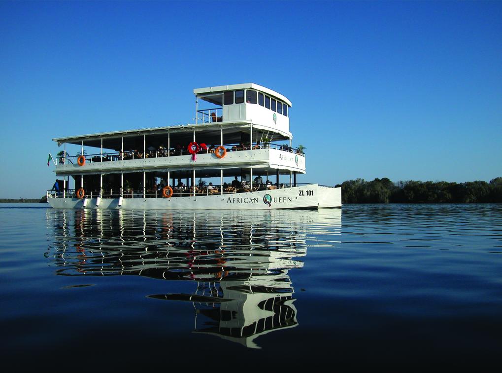 The African Queen and the African Princess are berthed just upstream of The Victoria Falls. Fully inclusive morning, lunch and sunset cruises are offered daily, treating passengers to sophisticated