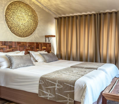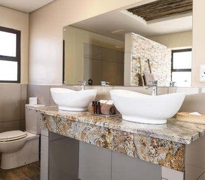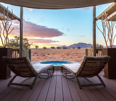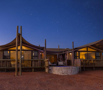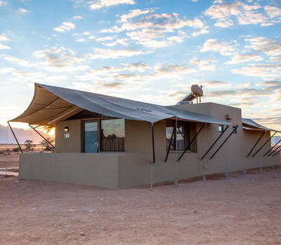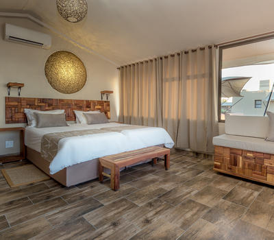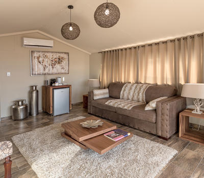 The Superior Units at Sossusvlei Lodge features a patio to enjoy the magnificent views over the Desert landscapes and a spacious air-conditioned bedroom featuring twin beds. In addition there is a corner couch, refreshment area with tea and coffee making facilities, fridge, luggage space, in-room safe and a complimentary turn-down service. Each of the stylish en-suite bathrooms is equipped with a comfortable corner bathtub, spacious shower, toilet and double vanity. Two of the Superior Rooms are designed to be handicapped and wheelchair friendly featuring no steps and are equipped with wider doors. Handles have been fitted in the bathroom and the shower has an open design for easier access.