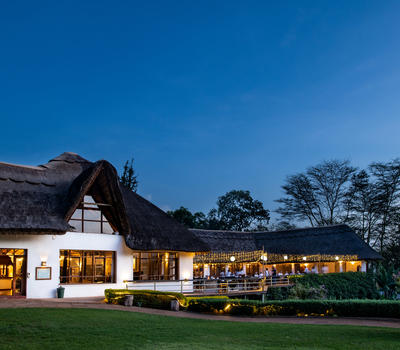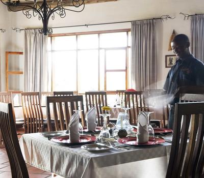 The main building, covered with an elegant thatched roof, contains the lounge, restaurant and a big deck which offers spectacular views of the Oldeani Volcano.