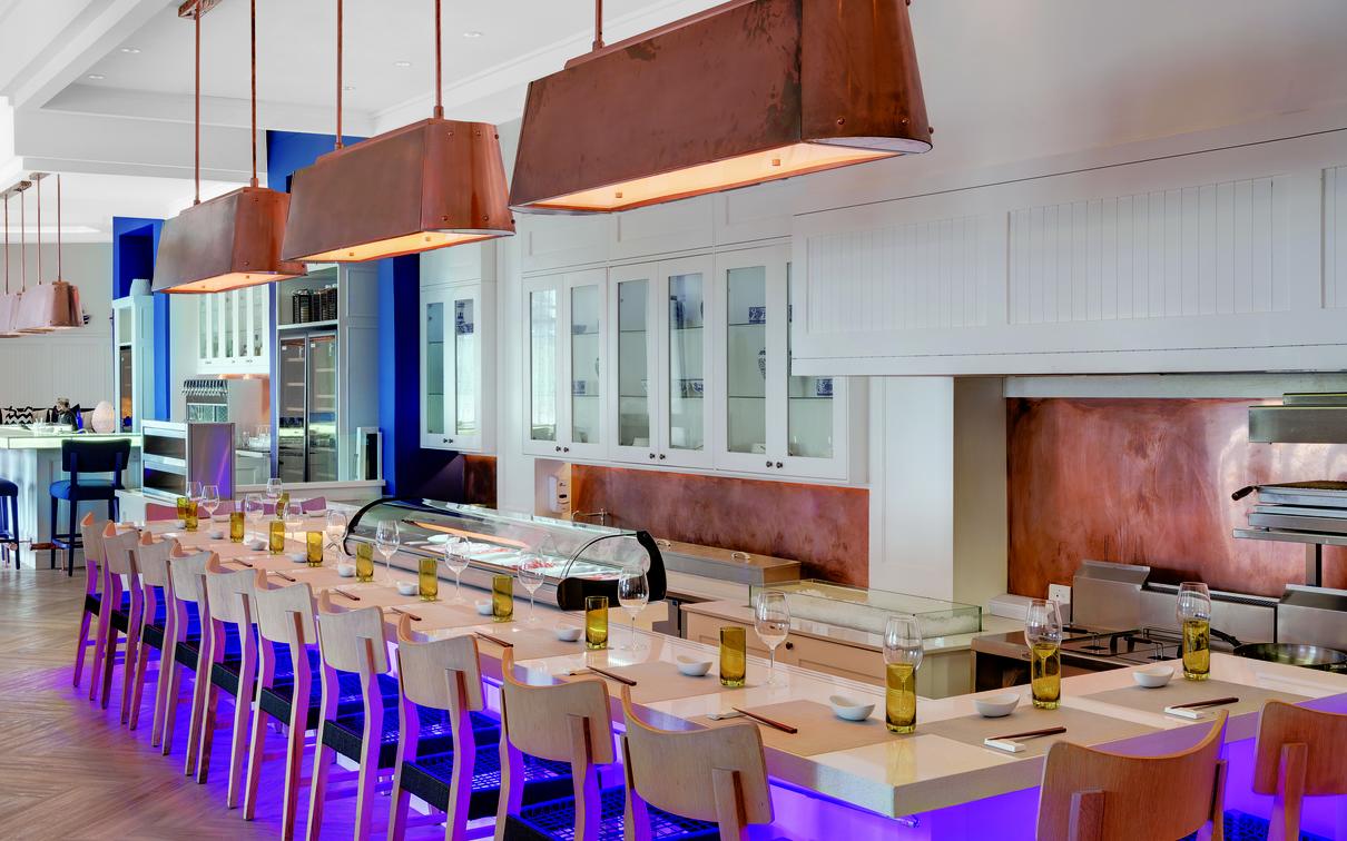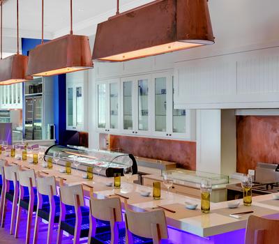 Seafood Restaurant and Oyster & Wine Bar with sea-facing terrace specializing in all the Ocean has to offer including Namibian Oysters and Sushi or Sashimi and a vast selection of wines from the cellar served by the glass, carafe or bottle. A special and unique feature is its Show-Kitchin where diners sit at a counter watching the Chefs in action. An a la carte Restaurant menu - Lunch, Dinner and Seafood Bar Snacks.