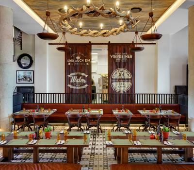 A Micro-brewery, Beer garden, Restaurant, Bar, Lounge with open fireplace, sea-facing terrace with two "Boma" fire pits and a fireplace. An a la carte Restaurant menu for Lunch, Dinner and Bar Snacks specializing in Namibian, German and other meat dishes and featuring its own "craft" beer and on site Micro-brewery. An opportunity to experience the actual brewing process.