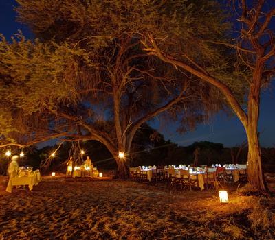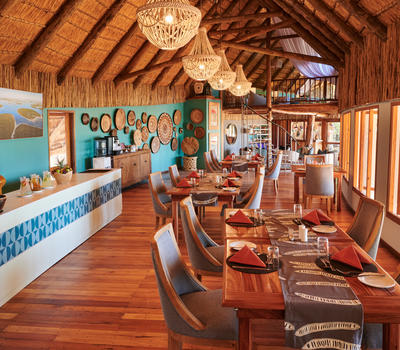 A dining area which serves buffet-style food and individually plated food or alternative bush dinner