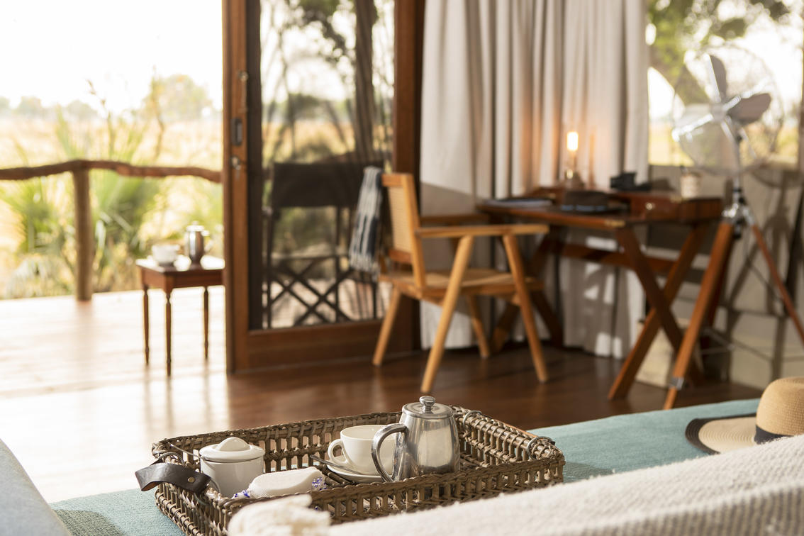 Shinde was rebuilt in 2020. Shinde is an iconic camp, one of the first in the Okavango Delta, and loved by many. The new Shinde pays homage to its former self retaining the authentic classic safari style. The new tents and main area provide a luxury experience with a touch of historical charm. The décor of the new camp can be described as “the best of nature within an authentic safari design – still with the understated, friendly and intimate Ker & Downey Botswana feel”. Elegant, Classic, Opulent ‘Out of Africa’. A ‘worldly’ sophisticated safari experience. Every possible comfort has been created for – from full solar electricity and a private viewing deck, through to yoga mats!