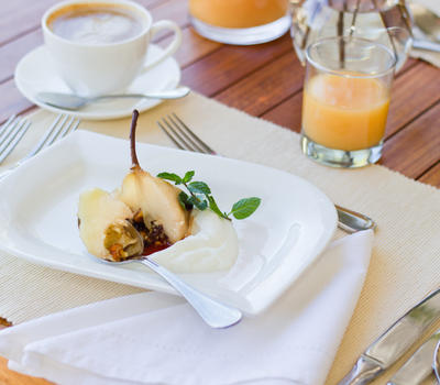 Breakfasts at The Conservatory, one of the finest restaurants in Swellendam, are made with LOVE as a gourmet 3-course set menu affair and our country hotel has developed quite a reputation for them.