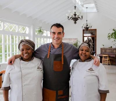 When our wonderful Chef Obie (very sadly) left us to marry his fiancé in Bloemfontein a bit earlier this year, we decided not to replace our Head Chef position, but rather to empower and upskill the ladies that have been working in our kitchen since Chef Wander joined us in 2011. We have been so heartwarmed at the way Elizabeth & Griets have risen to the occasion. Chef Jason was the obvious choice as consultant chef, as he has been visiting us yearly on his own personal retreat for 6 years and we hold precious places in each other’s hearts. He spent a week with us at the end of September (most definitely not on retreat this time!) to train Elizabeth and Grieta. We’re so grateful for the way Chef Jason mentored our two willing and talented chefs – he really took them under his wing and opened their eyes to new ways of cooking and presenting. They still need a bit of practice on the the refinement of presentation, but my word, their tastes rock!