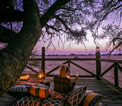 Our little secret, the Dove’s Nest, is just about the best way to get away from it all. There are few things more exciting than spending a night out in a tree-house. Overlooking the open tree-lined vlei and pan where giraffe and elephants commonly come to drink, this rustic gem is a perfect vantage point from which to view wildlife safely, quietly. Just the two of you. Kept simple, as a tree-house should be, the bedroom of the Dove’s Nest is reached by a wooden stairway and trap door. You won’t have to forego your hot shower and warm bed and the location is second to none.
