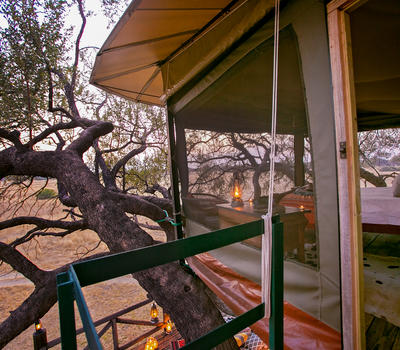 The accommodation used for The Private Hide are the adjacent tents numbering from tent 7, 6, 5 and/or Tent 4, depending on the number of guests. Tents 7 and 6 are large Deluxe Suites or Family Tents. The Family Tents can accommodate 2 adults and 2 children in full size beds. Children of any age are welcome. Booked by a minimum of 2 full paying guests.
