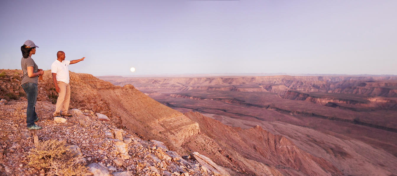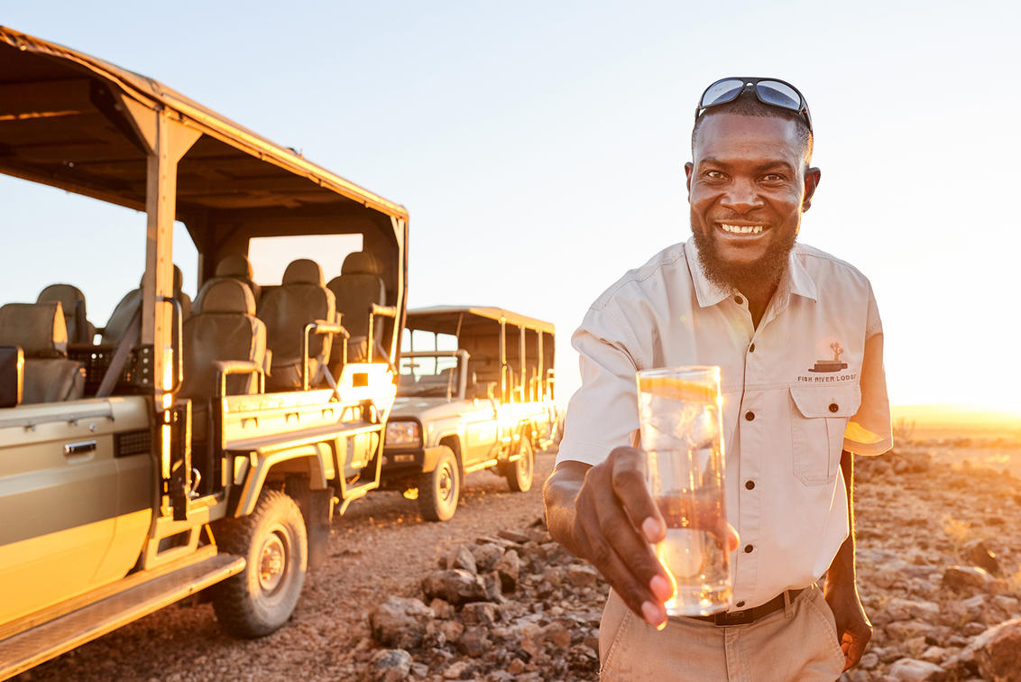 The late afternoon drive will take you along the top of the plateau with stops at two different viewpoints for you to take photographs and experience the canyon at its most dramatic. Our guide will also explain the geology, flora and fauna along the way before you catch a glimpse of the meandering Fish River below at the last stop. Drinks and snacks will be served.
