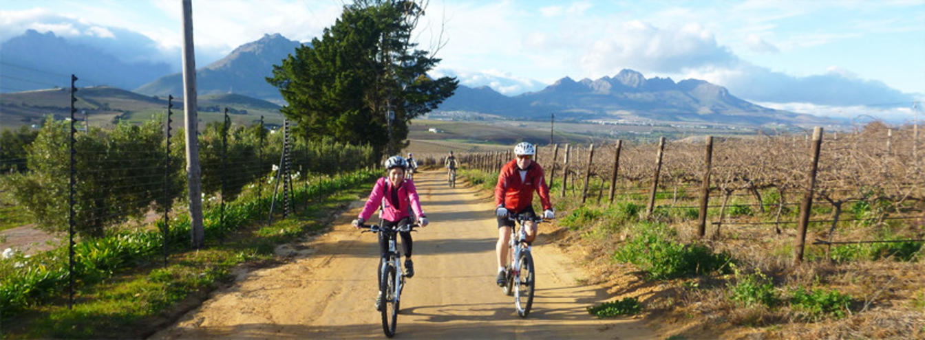 For a leisurely bicycle tour of the Cape Winelands off the beaten track, the picturesque Devon Valley in the heart of Stellenbosch offers an exhilarating eco-biking tour with spectacular wine and gourmet food experience.