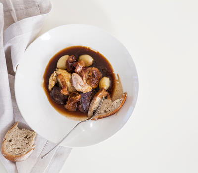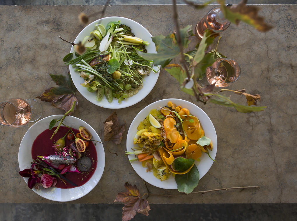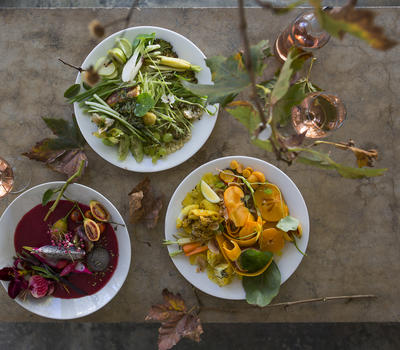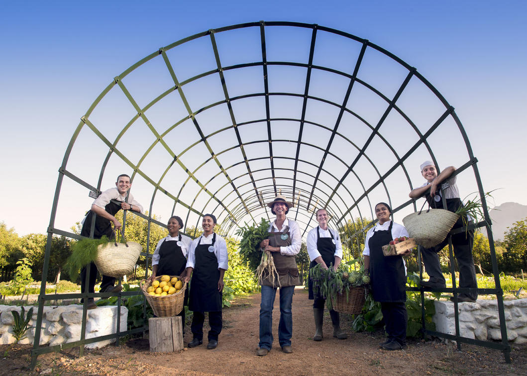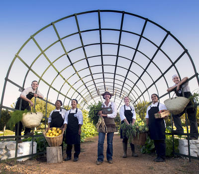 Because our menu is guided by what is available in the garden, our food always reflects the season, and so in summer we may serve you a yellow salad of pineapple, gooseberries, granadillas, yellow tomatoes and apricots while in winter a slow-cooked leg of lamb in red wine is more likely. Dessert subscribes to four flavours, namely salty, bitter, sweet and sour. And while our meals are creative, we don't like to tamper unduly with our food. Our meals are always clear in structure, so that fruit and vegetables gathered daily from the garden is often served with its skin on. Helpings are generous and depending on the weather you can take your meal in the glass-enclosed restaurant or under the plane trees in the courtyard.