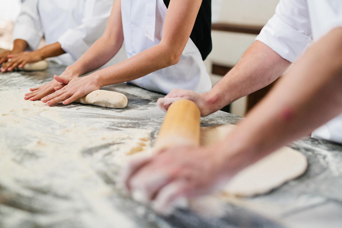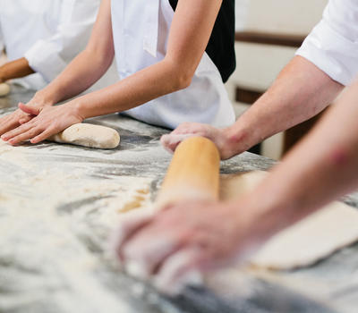 Our Bakery offers scrumptious Italian-inspired evening meals on Wednesday & Friday, but also supplies our shop with freshly baked bread to be enjoyed with delicious cheeses from our Cheese Room. We grow our own wheat on the farm which is stoneground after harvest. This flour is sold in the Farm Shop, but is also used by our own bakers who, under the guidance of our head baker Ernie Beck, make sure we have freshly baked bread early every morning for our restaurants and the Tasting Room. We have a variety of breads, including sourdough, rye, white and whole wheat.