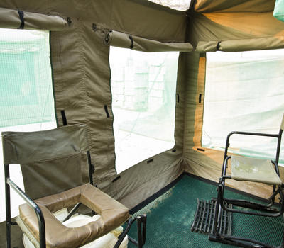 In our camps we set up large tents of 4.5 m x 3m x 2 to 2.5 m, built with a thick layer for insulation on the ground and a partition between the bedroom and private bathroom interior. The tents can be double, single or family (with 1 or 2 children). The tents have large windows with mosquito gauze.