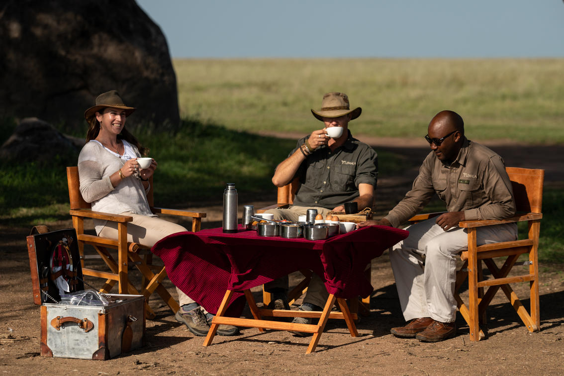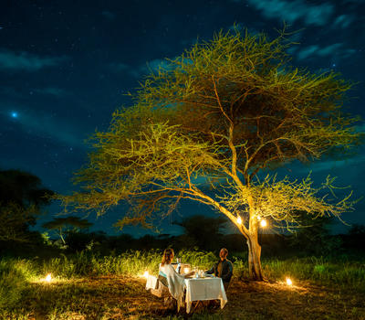 No safari is complete without experiencing a traditional outdoor, open-air lunch or dinner. Relax under the natural canopy of an acacia tree, while your personal butler serves up a feast. Nothing is quite so essentially safari as this. White linen, fine bone china and crystal glassware create a real "Out of Africa" experience - both daytime and night.