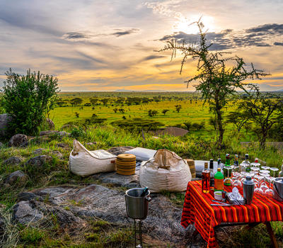 Sundowners are more than just a happy hour. They are a very cherished African tradition and form an integral part of your safari experience. It is a time to relax, reminisce the day gone by, enjoy a cocktail or glass of wine around the camp fire with fellow travellers, and watch as the sun goes down over the Serengeti plains.
