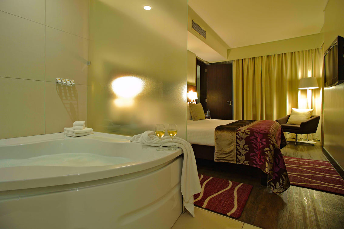 Bathrooms features a Bathtub, a toilet and a rain shower