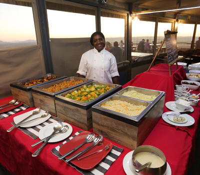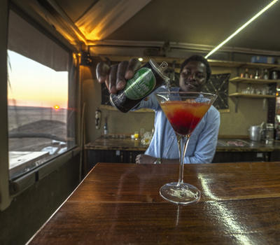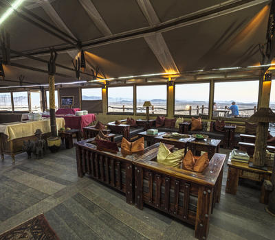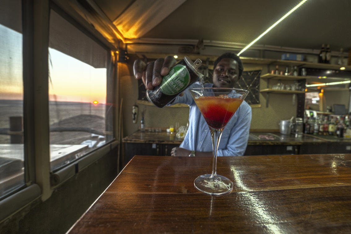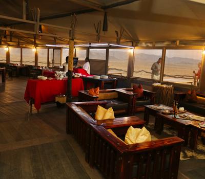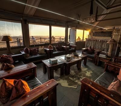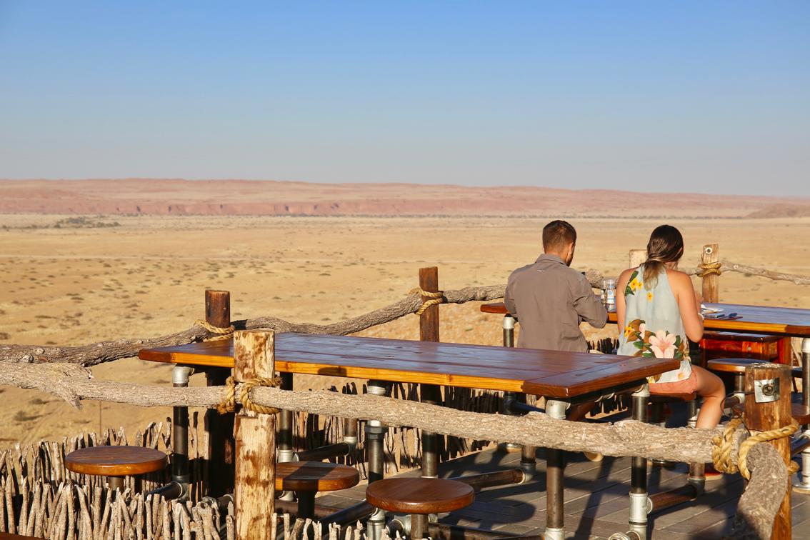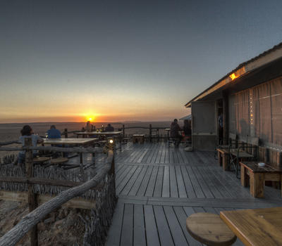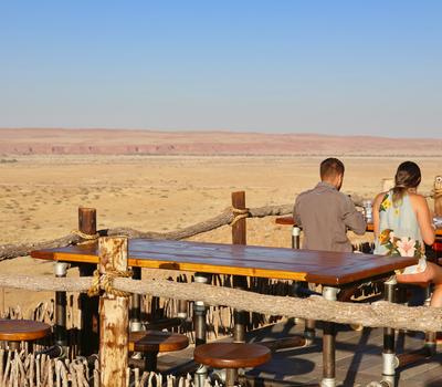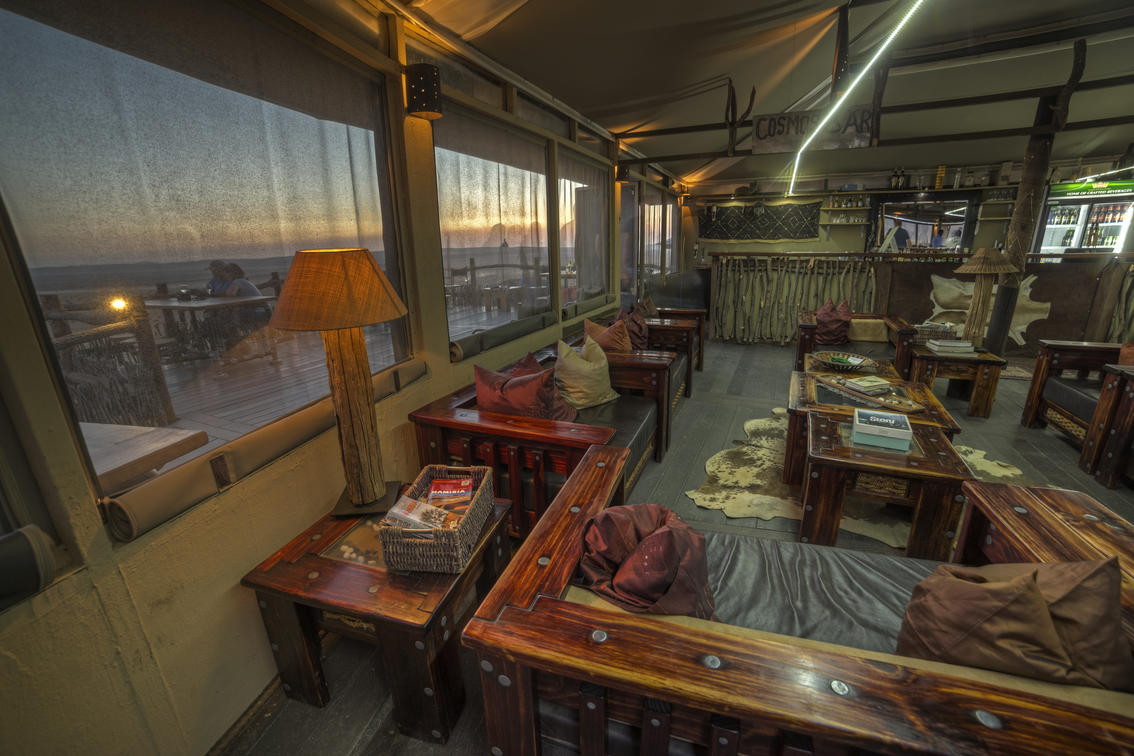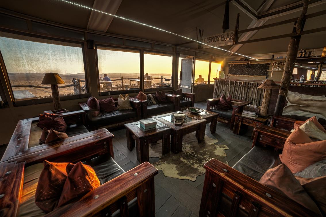 Our fully licensed Cosmos Bar serves drinks throughout the day and is adjacent to a large deck overlooking the desert plains and Petrified dunes in the distance.