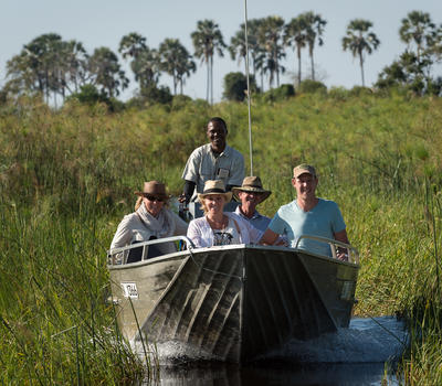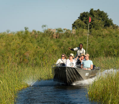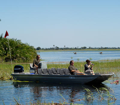 Explore the more distant channels by boat. Lookout for red lechwe and elephant and maybe even catch a glimpse of spotted-necked otter.