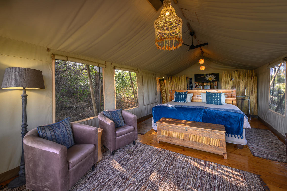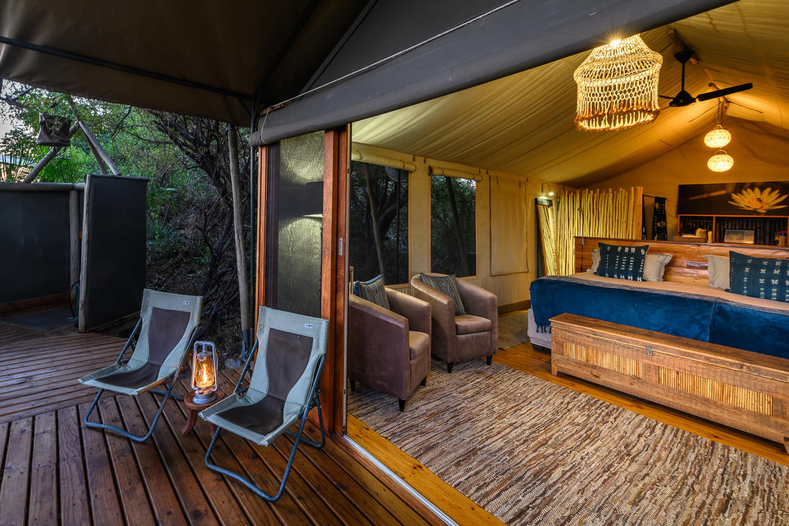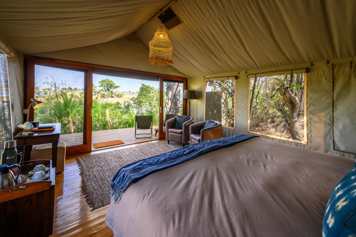 Shaded by a sublime canopy of trees, traditionally styled meru tents with en-suite facilities, make up this intimate camp. The canvas tents have a covered front veranda with spectacular views over the Delta, and are completely private, making Pelo ideal for a family or group of friends looking for an authentic Okavango Delta safari.
