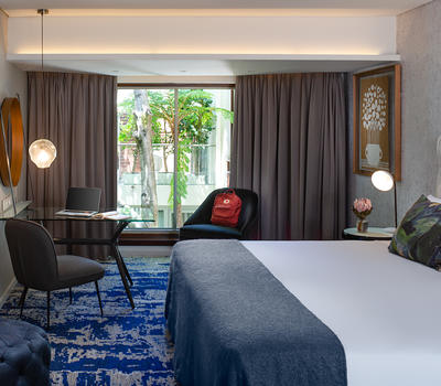 With views, or private patio access to lush tree-ferned gardens, these spacious Courtyard Garden Deluxe rooms have bathrooms with separate bath and shower. They feature softly styled décor with local wood and stone. Each room is equipped with a flatscreen, a hairdryer, complimentary tea & coffee making facilities and wall safe.