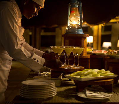In the central restaurant, guests can enjoy exceptional food and wines, and the cozy lounge area has been designed to give an atmosphere of intimacy and exclusivity with comfy armchairs and sofas. There is internet access and Wifi is available in the central area. A small library and selection of board games ensures that our guests are always occupied. For those who want to cool down after a dusty game drive, the refreshing swimming pool is the perfect place to relax and unwind. And in the evening, guests can marvel at the extraordinary sunsets with a spoiling cocktail beside the warming camp fire.