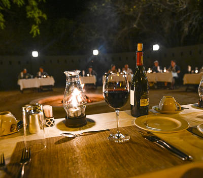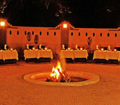 Dinner is served in the boma under the African sky, with nocturnal sounds as your background music...