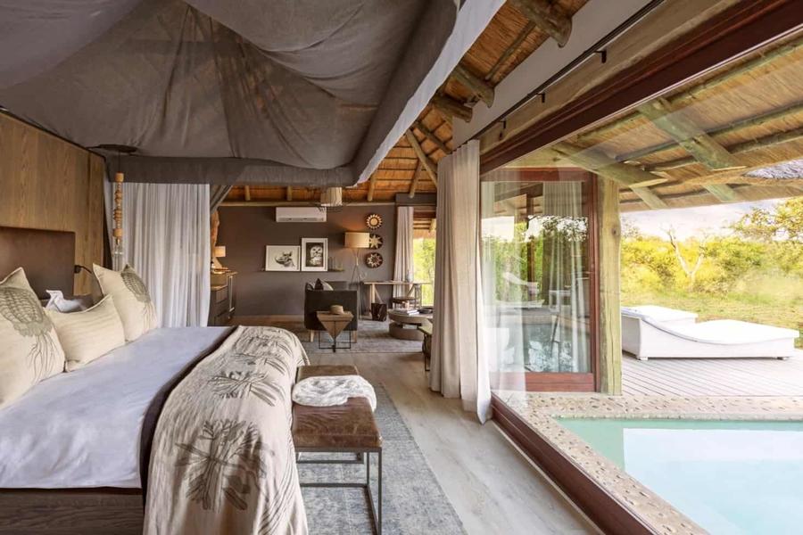 Leopard Hills Private Game Reserve is situated in the Sabi Sands Private Game Reserve, bordering the world famous Kruger National Park. Here the Big 5, Elephant, Lion, Rhino, Buffalo and Leopard abound, and viewing them from open Game Drive vehicles with experienced Rangers at a close proximity is their speciality. The 5 Star Luxury Lodge, with fine dining, outstanding cuisine and extensive wine cellar, is situated on a Hilltop Sanctuary overlooking a natural waterhole, and each of the 8 glass fronted air-conditioned suites, with private plunge pools have spectacular views out into the bush. The professional and friendly Staff awaits your arrival and look forward to introducing you to “their world”, and taking you on a Safari experience of a life time.
