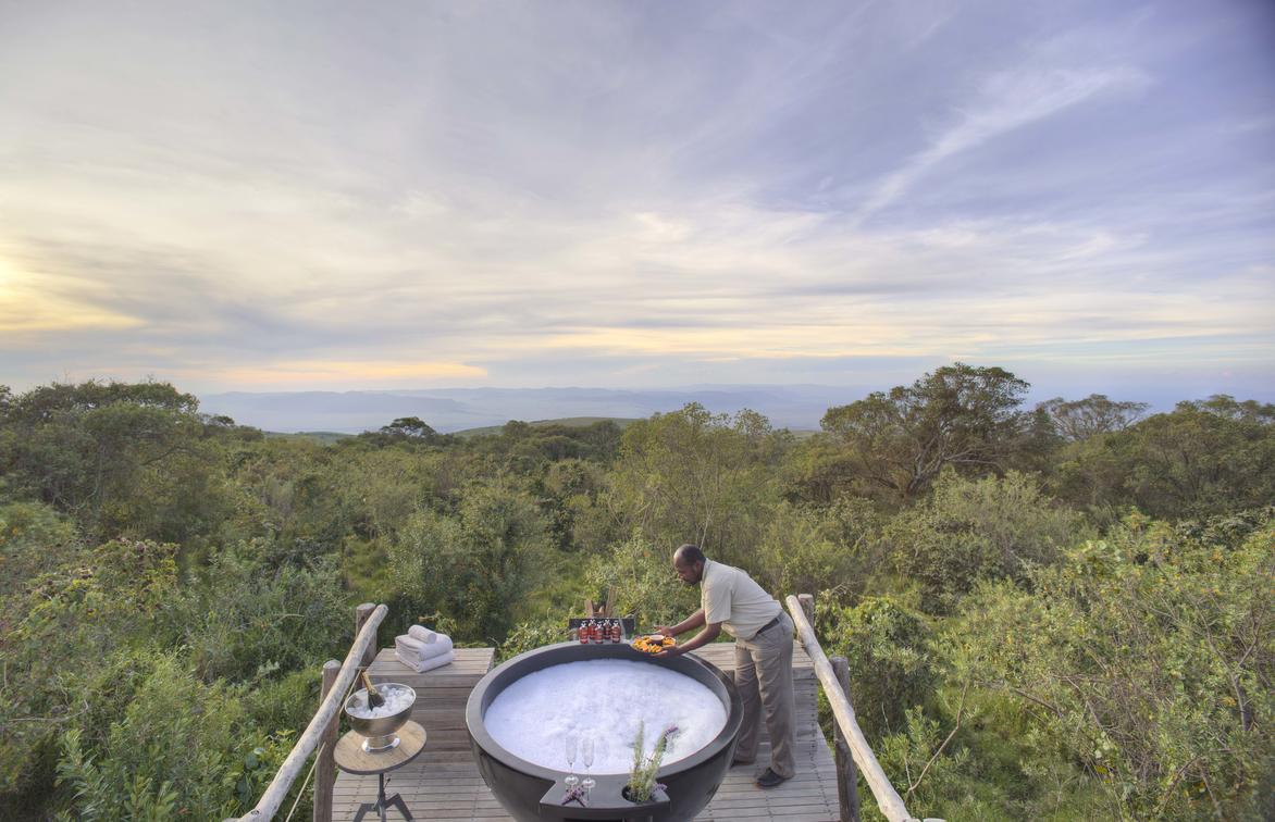 The Honeymoon dome emphasises privacy, rest, and relaxation, with a king-sized bed, en-suite bathroom with a double headed shower, as well as wood burning fire place for warmth in the colder months. In addition, there is a seating area, large elevated deck, and an outdoor hot tub which looks out over the beautiful landscape of Ngorongoro.
