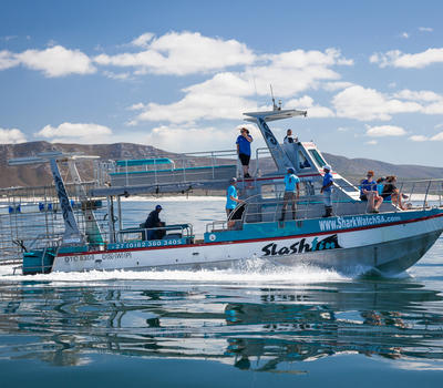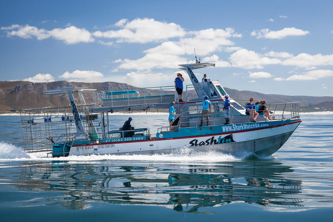Grootbos guests have the choice to either enter the cage on the shark boat or view these magnificent creatures from the top deck of the boat. Surface Viewing is normally suitable for people wanting to see the shark from out of water and not necessarily come face to face with it inside the water. However, it is often commented that one gets a better view of the sharks from the top deck.